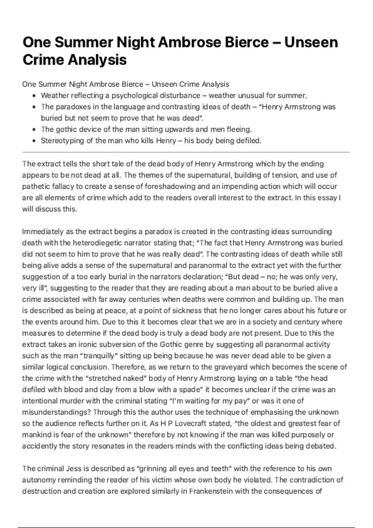 One Summer Night Ambrose Bierce – Unseen Crime Analysis