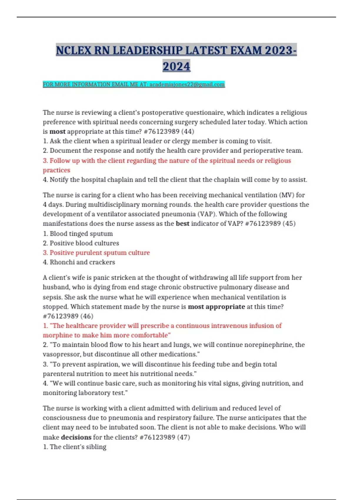 NCLEX RN LEADERSHIP LATEST EXAM