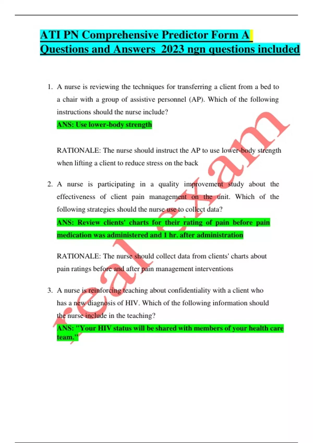 - ATI PN Comprehensive Predictor Form A