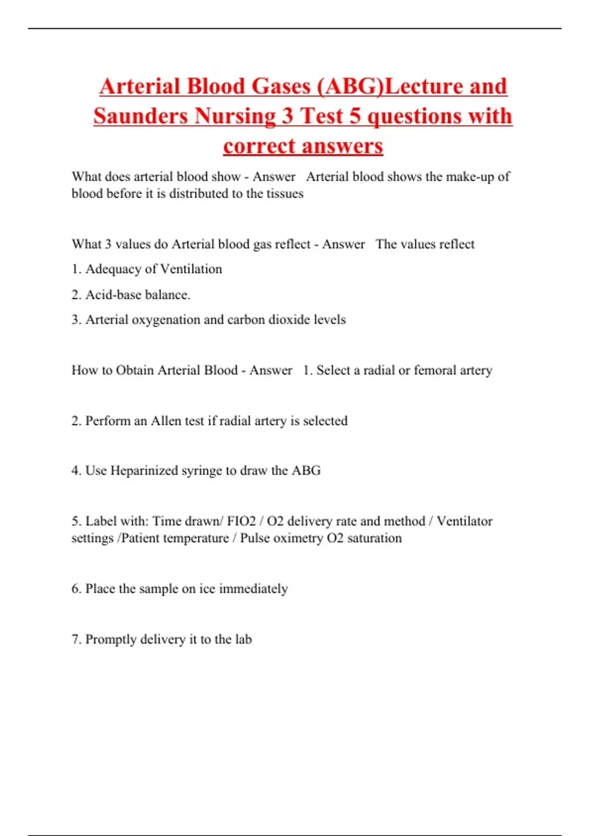 Arterial Blood Gases (ABG)Lecture and Saunders Nursing 3 Test 5 questions with correct answers