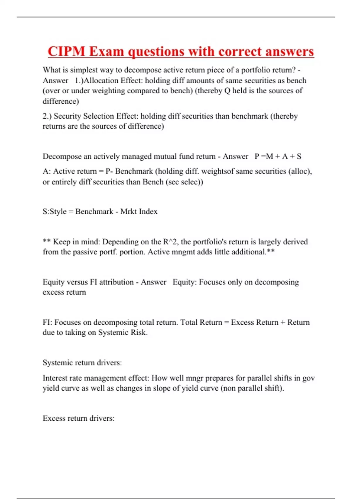 CIPM Exam questions with correct answers