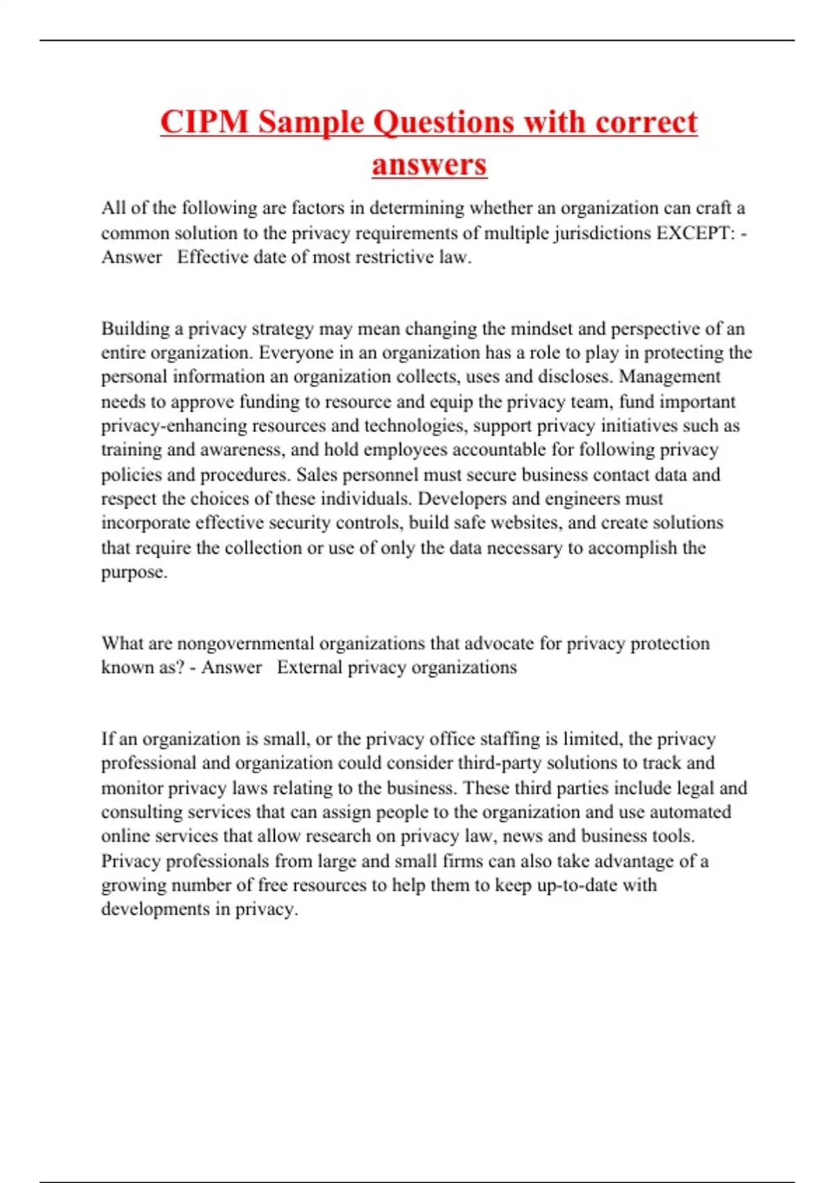 CIPM Sample Questions with correct answers