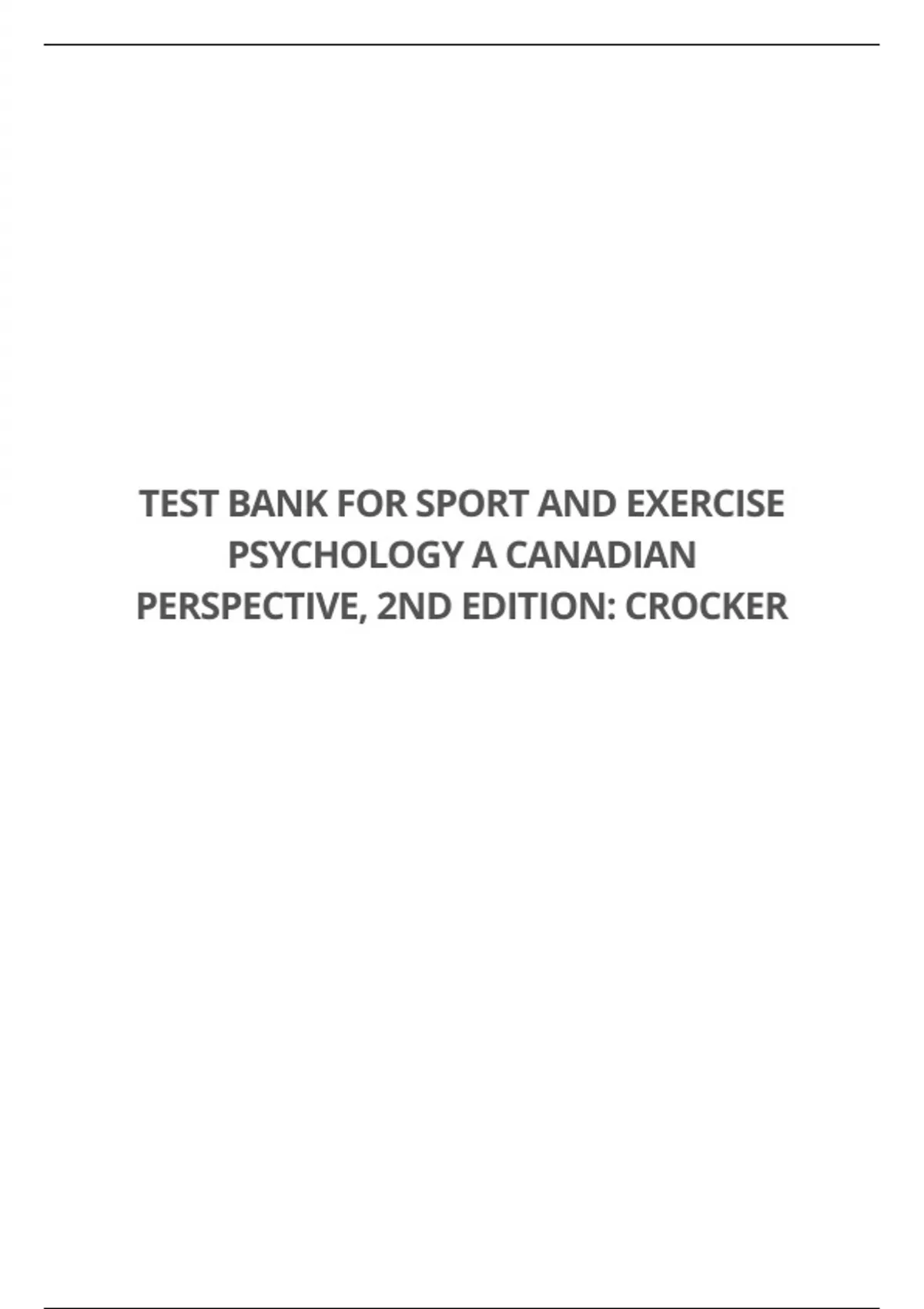 TEST BANK FOR SPORT AND EXERCISE PSYCHOLOGY A CANADIAN PERSPECTIVE, 2ND EDITION: CROCKER