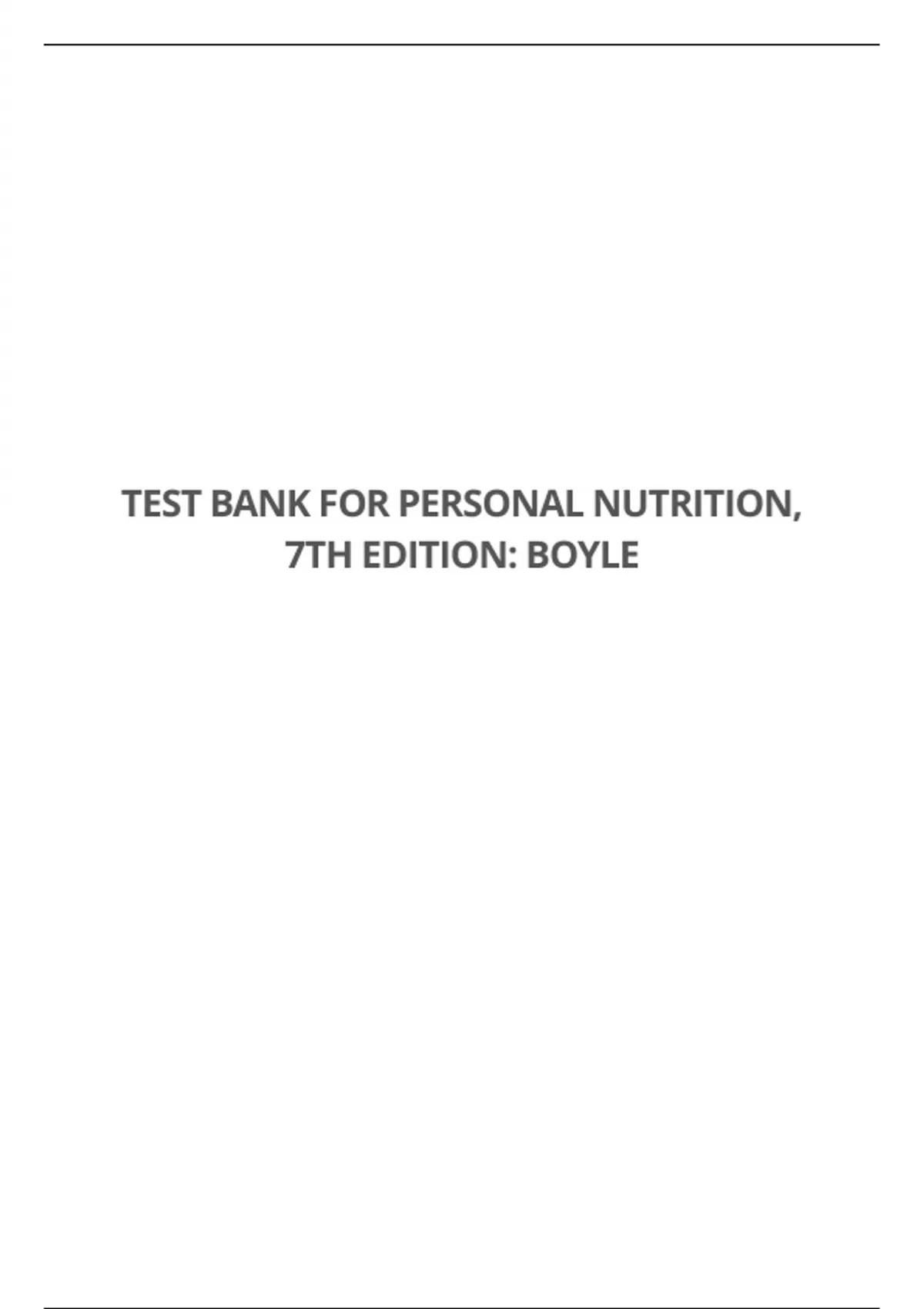 TEST BANK FOR PERSONAL NUTRITION, 7TH EDITION: BOYLE