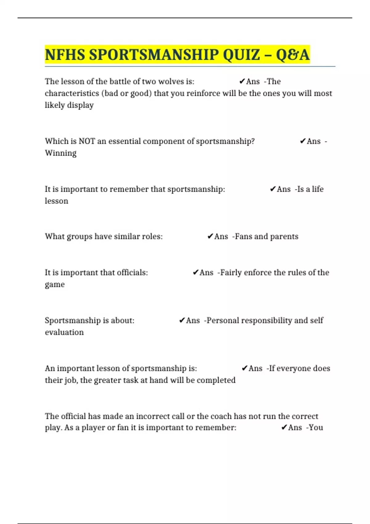 NFHS SPORTSMANSHIP QUIZ – Q&A