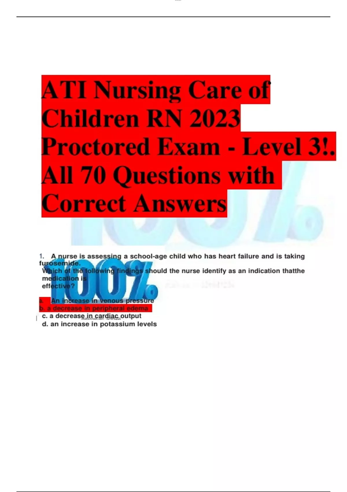 ATI Nursing Care of Children RN 2023 Proctored Exam - Level 3!. All 70 Questions with Correct Answers