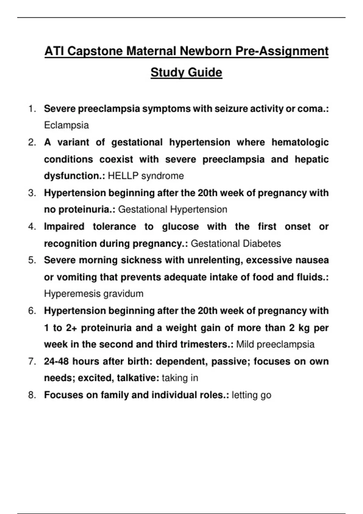 ATI Capstone Maternal Newborn Pre-Assignment Study Guide