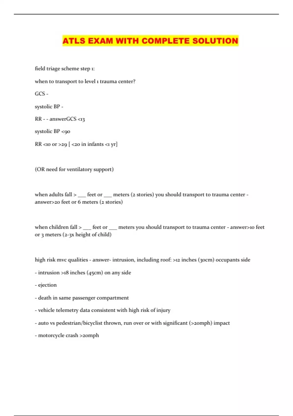 ATLS EXAM WITH COMPLETE SOLUTION