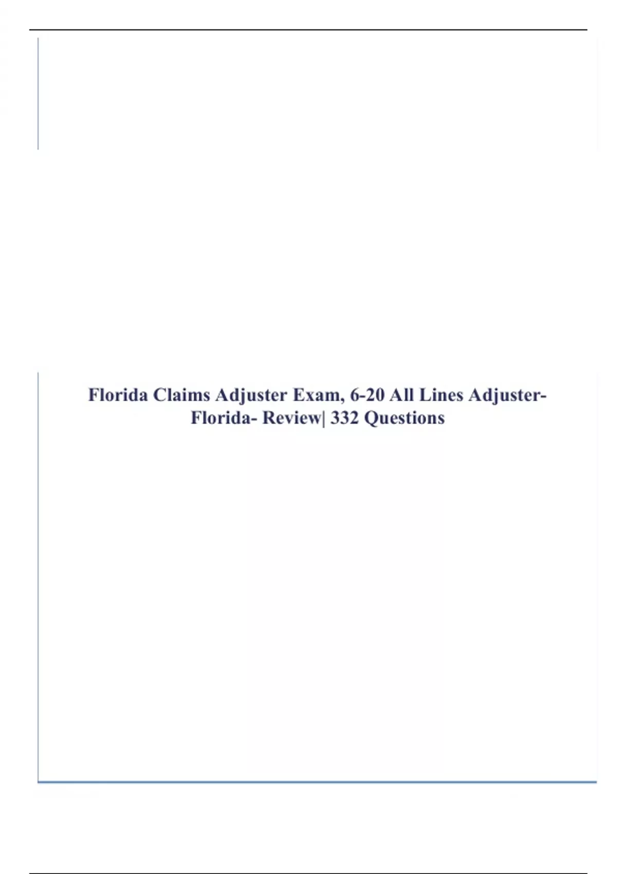 Florida Claims Adjuster Exam, 6-20 All Lines Adjuster- Florida- Review| 332 Questions