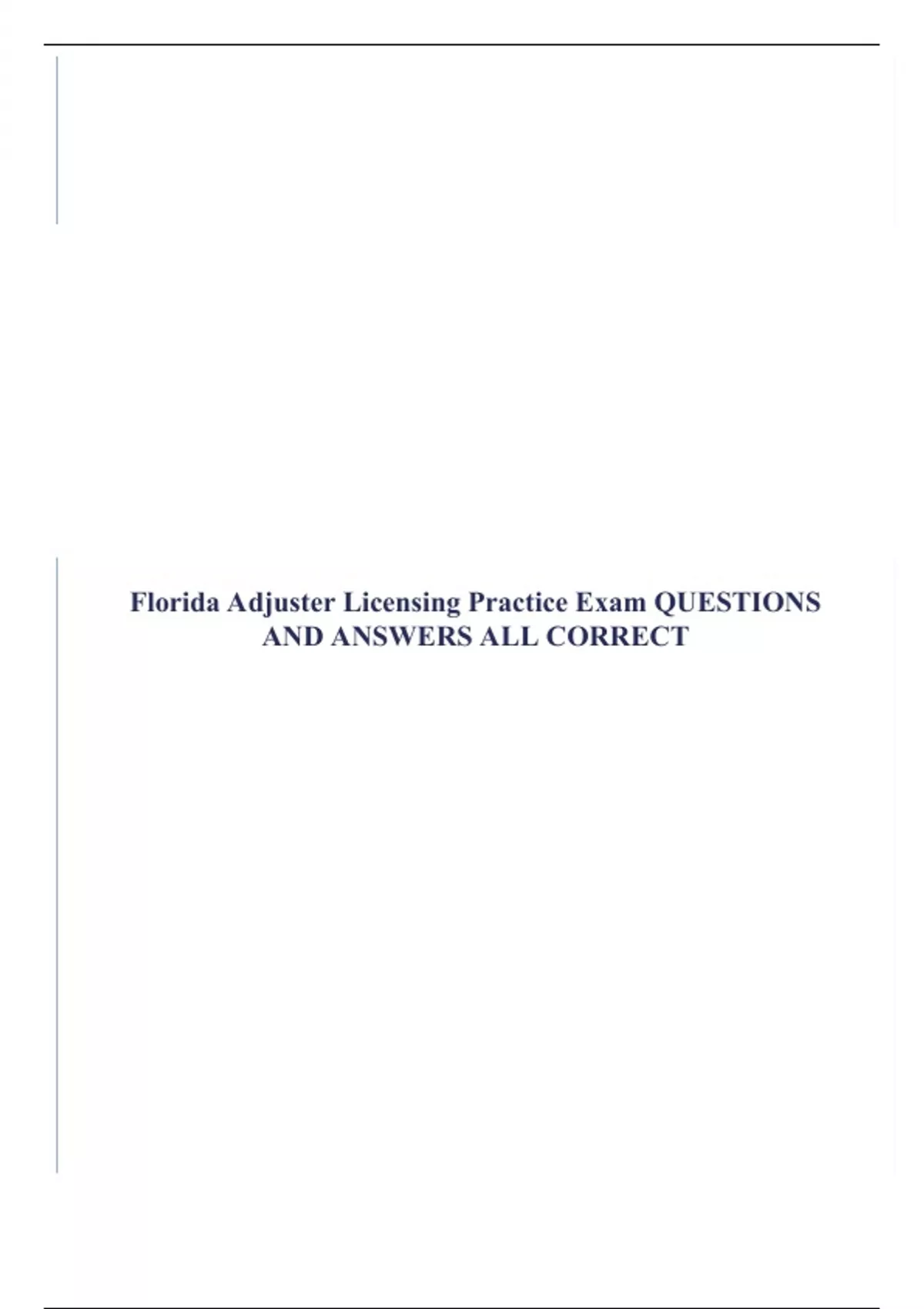 Florida Adjuster Licensing Practice Exam QUESTIONS AND ANSWERS ALL CORRECT