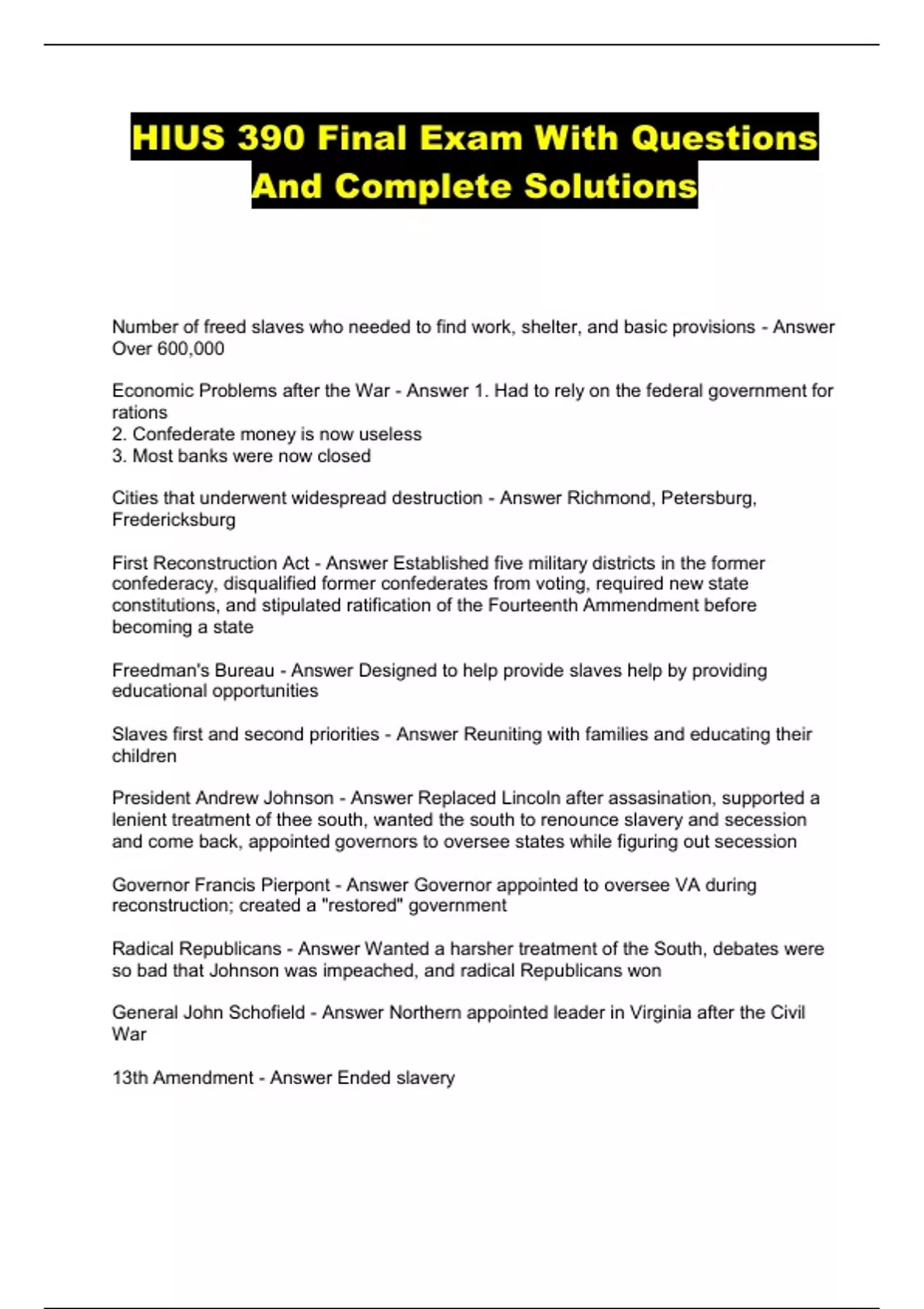 HIUS 390 Final Exam With Questions And Complete Solutions...