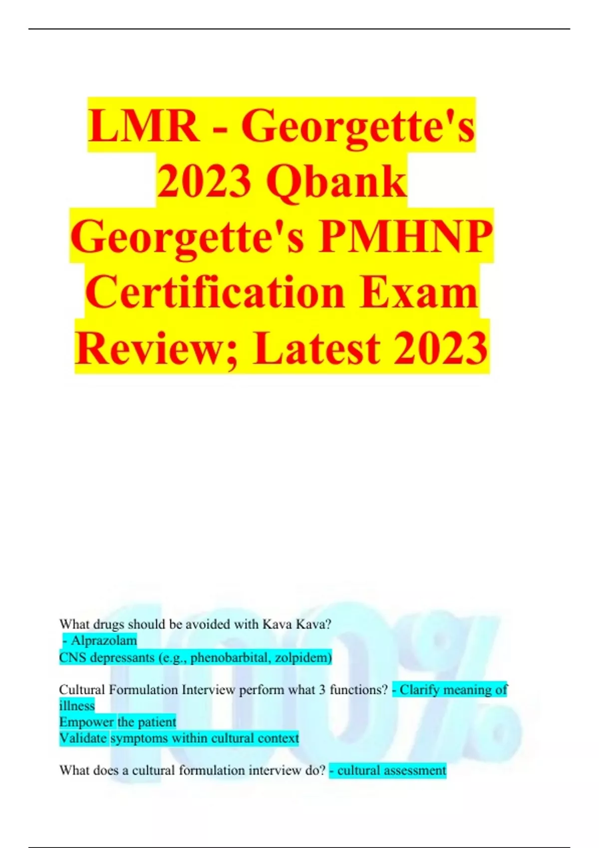 LMR - Georgette's 2023 Qbank Georgette's PMHNP Certification Exam Review; Latest 2023