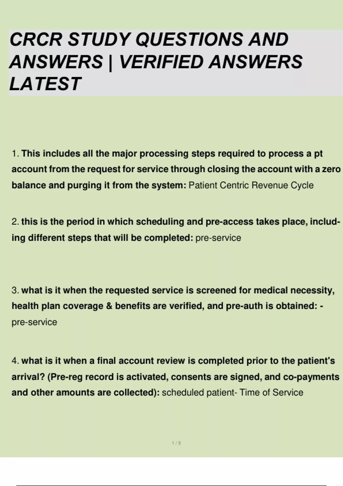 CRCR Exam Questions and Answers |Verified Answers by Expert Latest