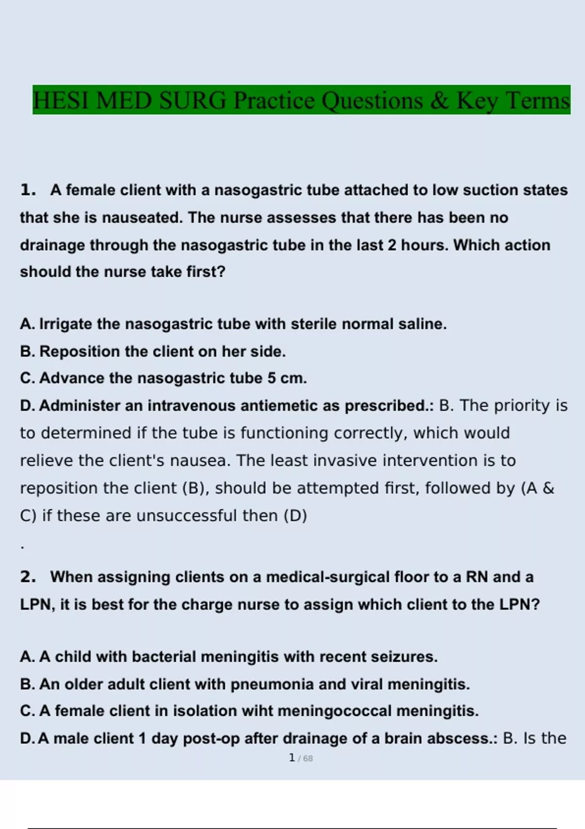 - HESI Med Surg 55