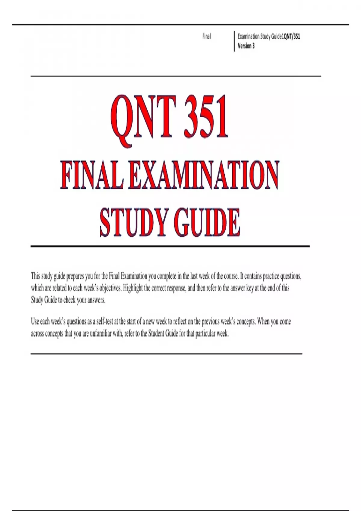 , Final Examination Study Guide2QNT/351