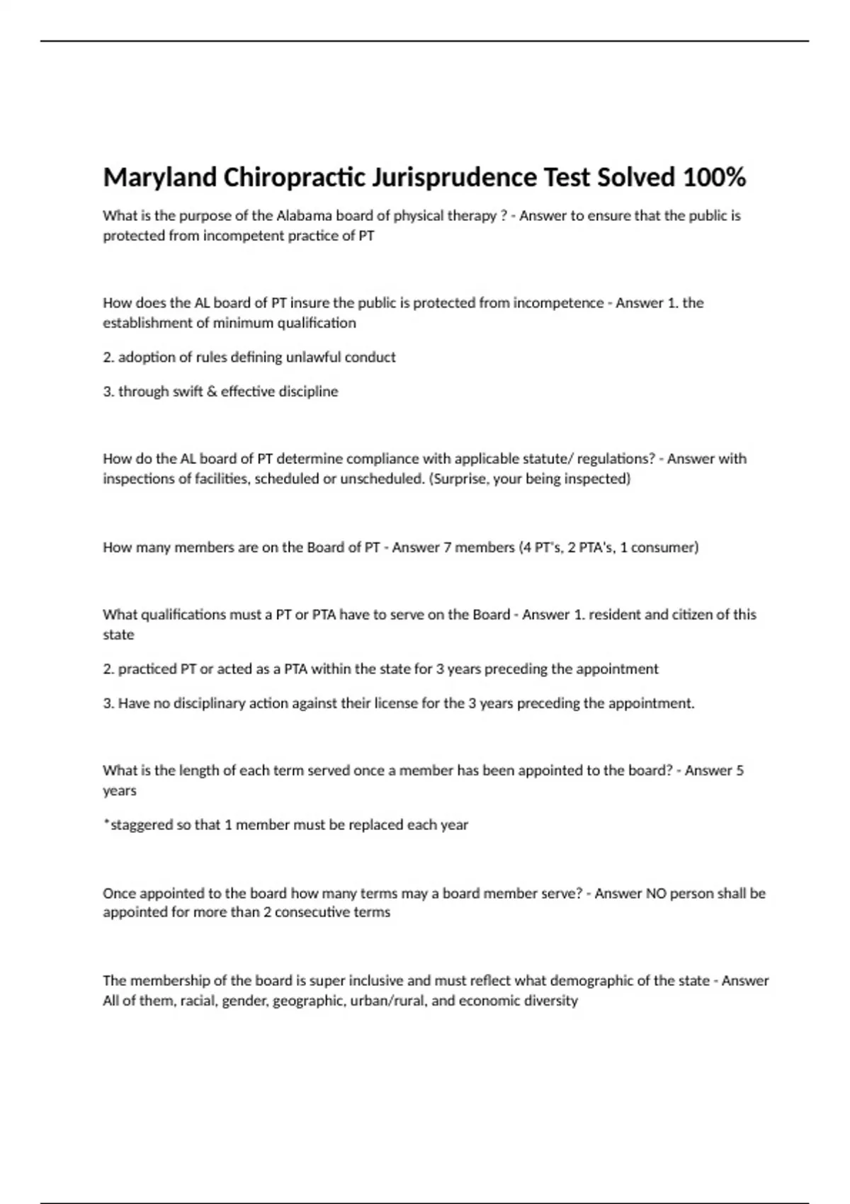 maryland chiropractic jurisprudence test solved 10