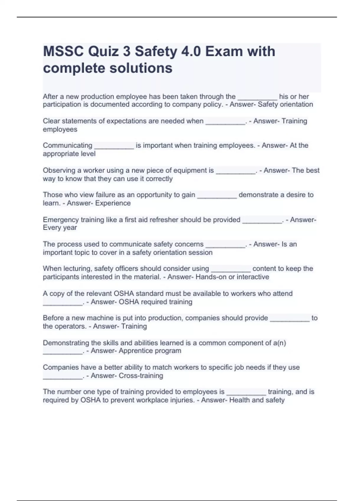 MSSC Quiz 3 Safety 4.0 Exam with complete solutions
