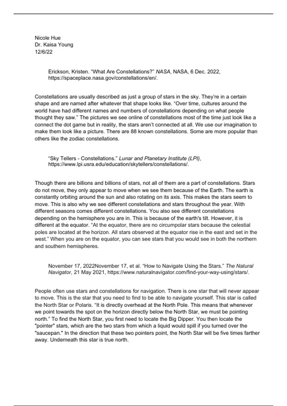 Lecture notes of 1 pages for the course Astronomy 101 at Nicholls State University (Constellations)