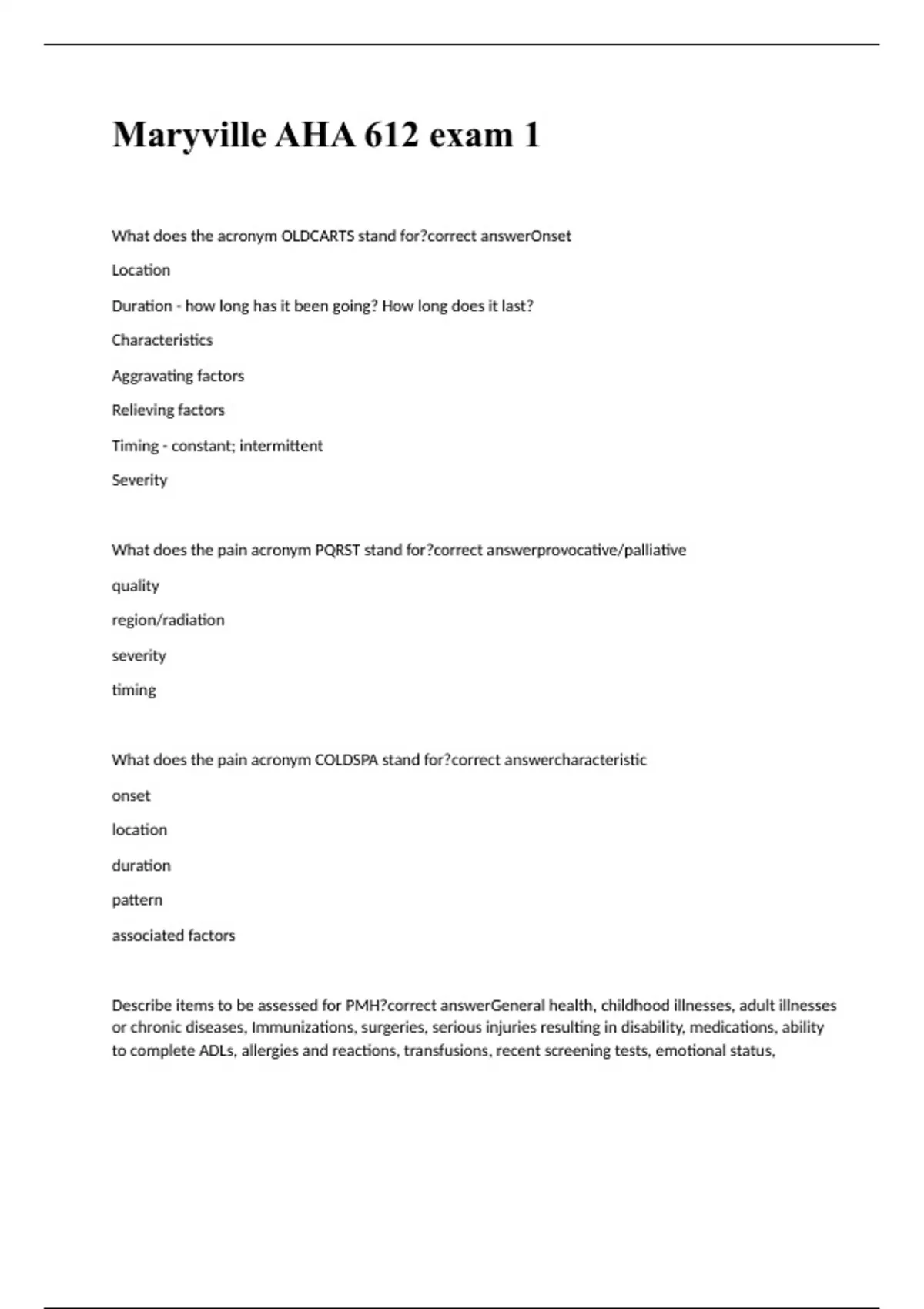 Maryville AHA 612 exam 2 questions 2023 with correct answers