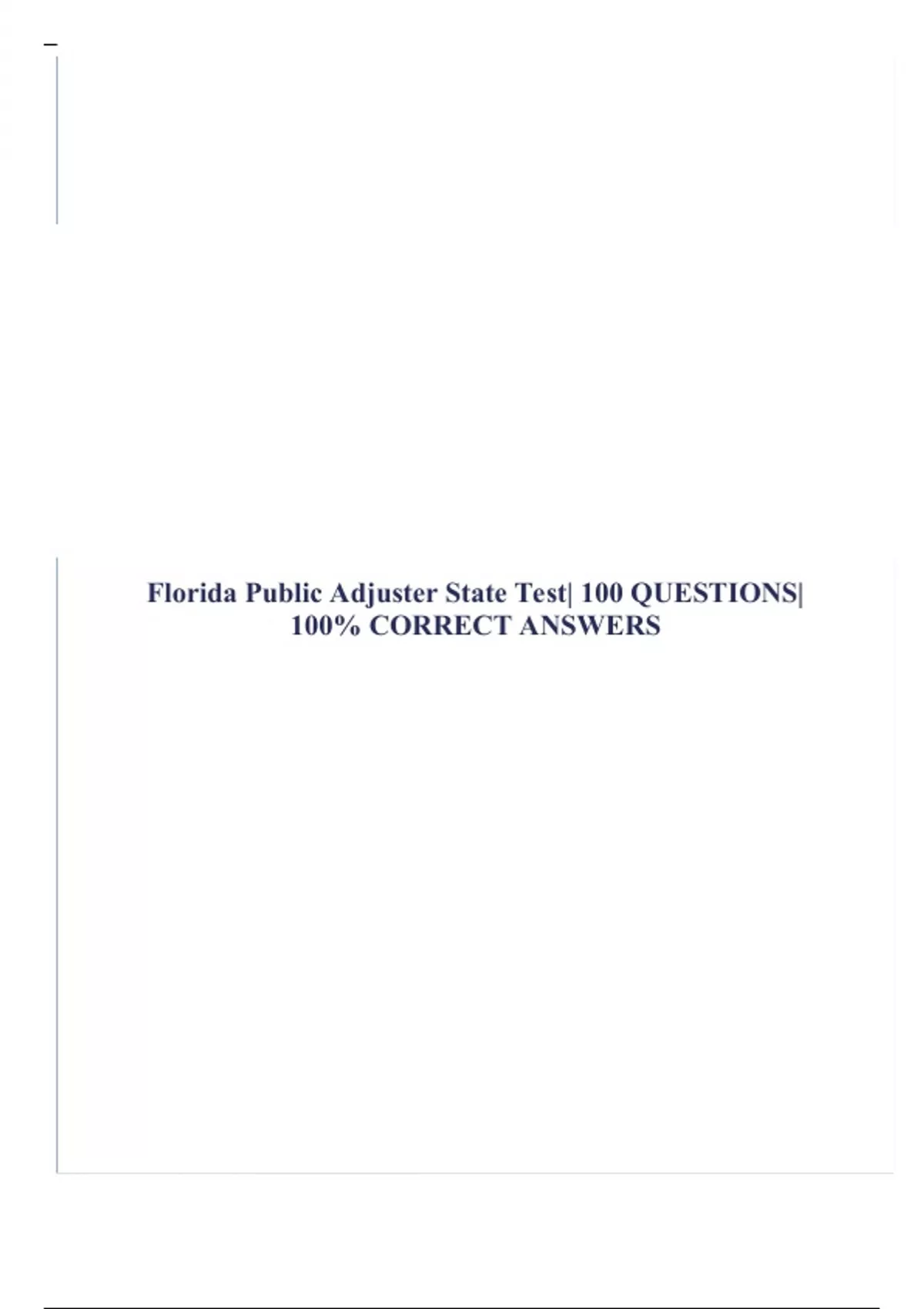 Florida Public Adjuster State Test| 100 QUESTIONS| 100% CORRECT ANSWERS