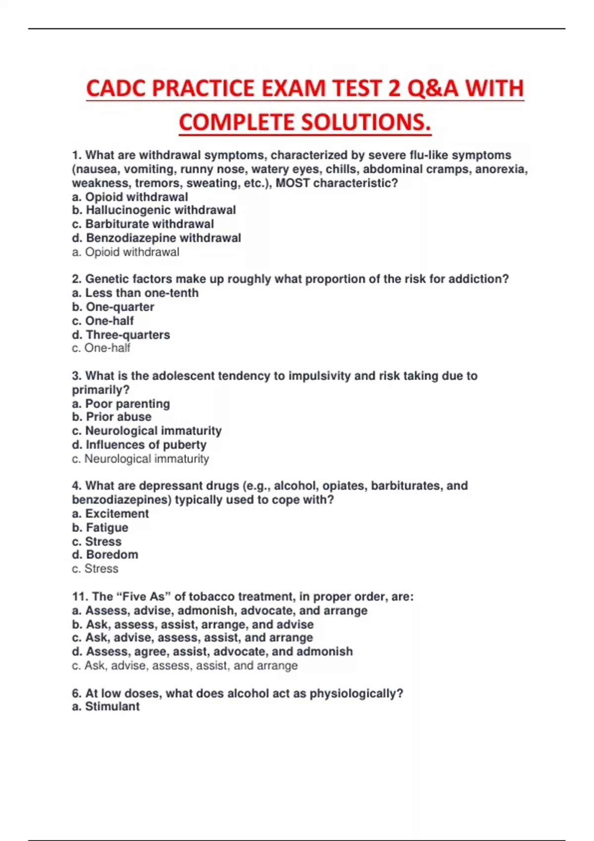 CADC PRACTICE EXAM TEST 2 Q&A WITH COMPLETE SOLUTIONS.