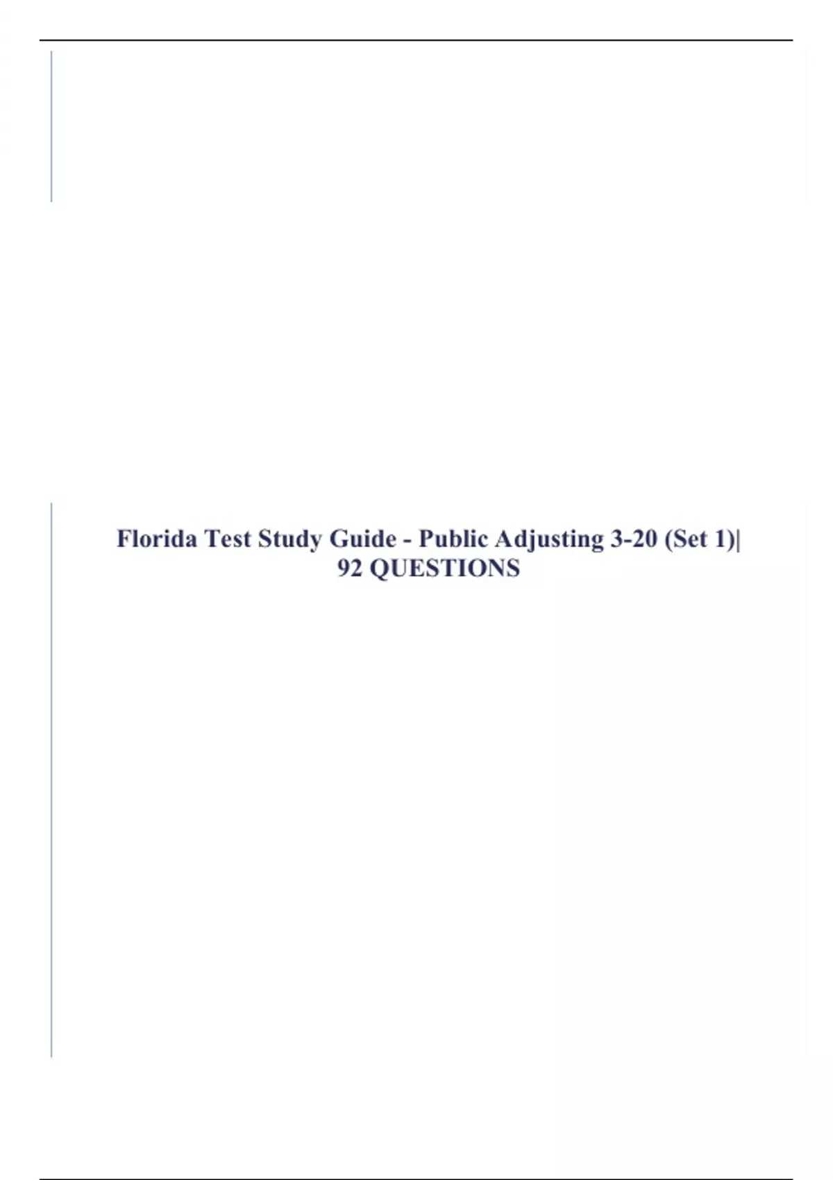 Florida Test Study Guide - Public Adjusting 3-20 (Set 1)| 92 QUESTIONS