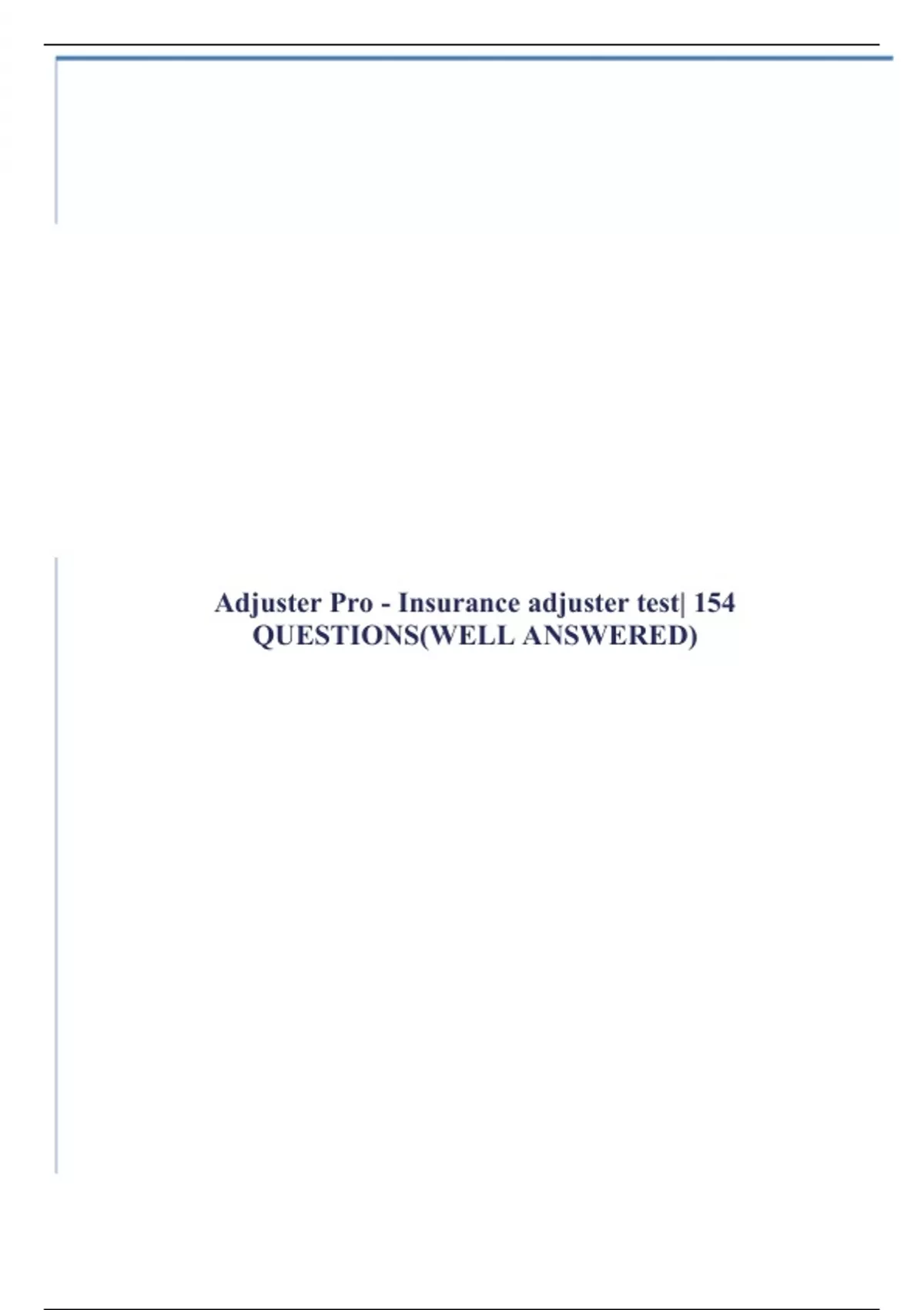 Adjuster Pro - Insurance adjuster test| 154 QUESTIONS(WELL ANSWERED)