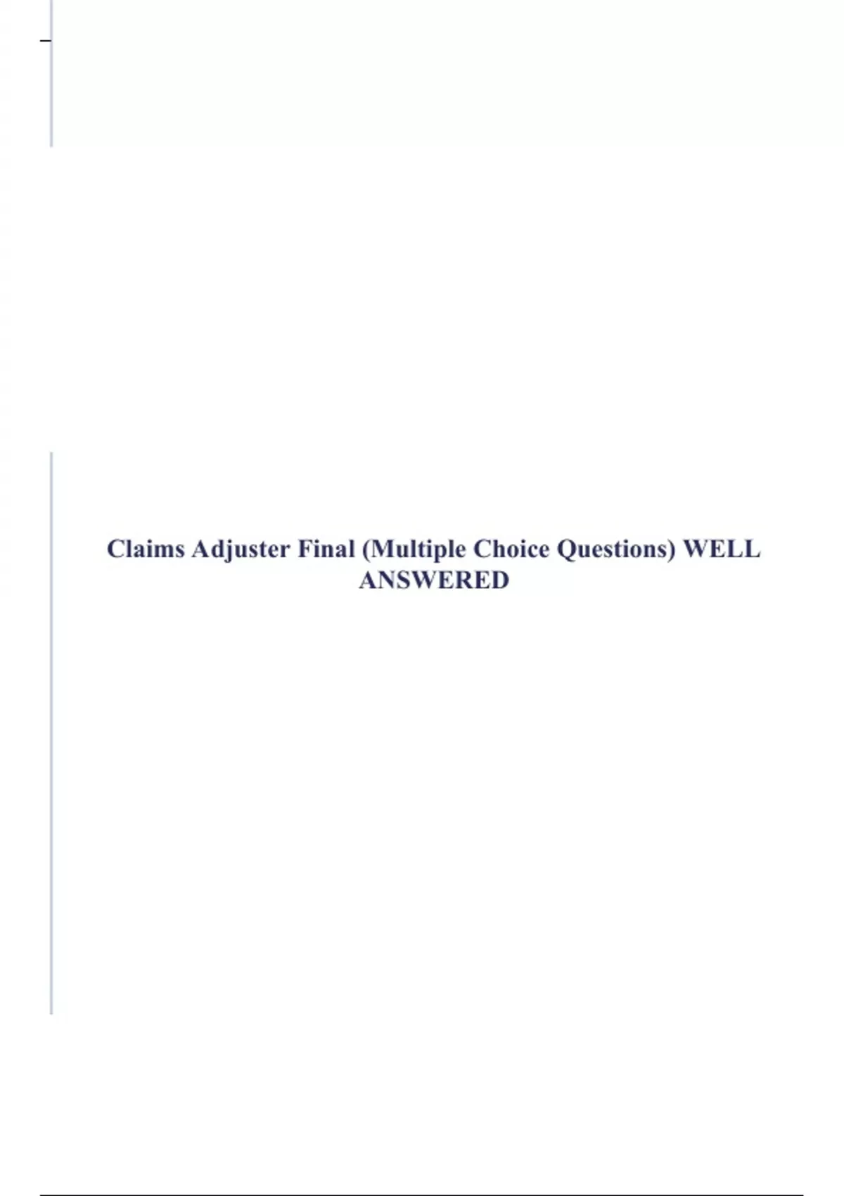 Claims Adjuster Final (Multiple Choice Questions) WELL ANSWERED