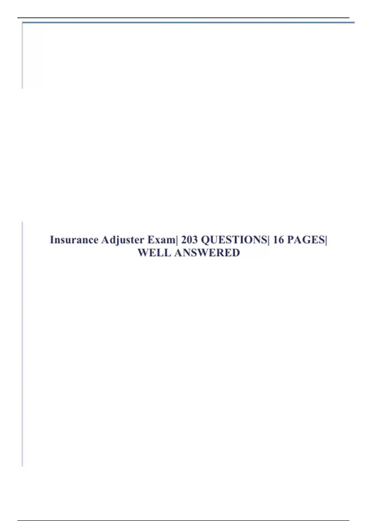 Insurance Adjuster Exam| 203 QUESTIONS| 16 PAGES| WELL ANSWERED