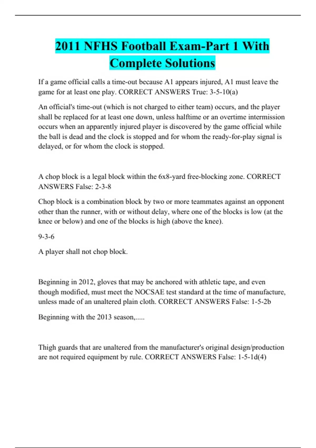 2011 NFHS Football Exam-Part 1 With Complete Solutions