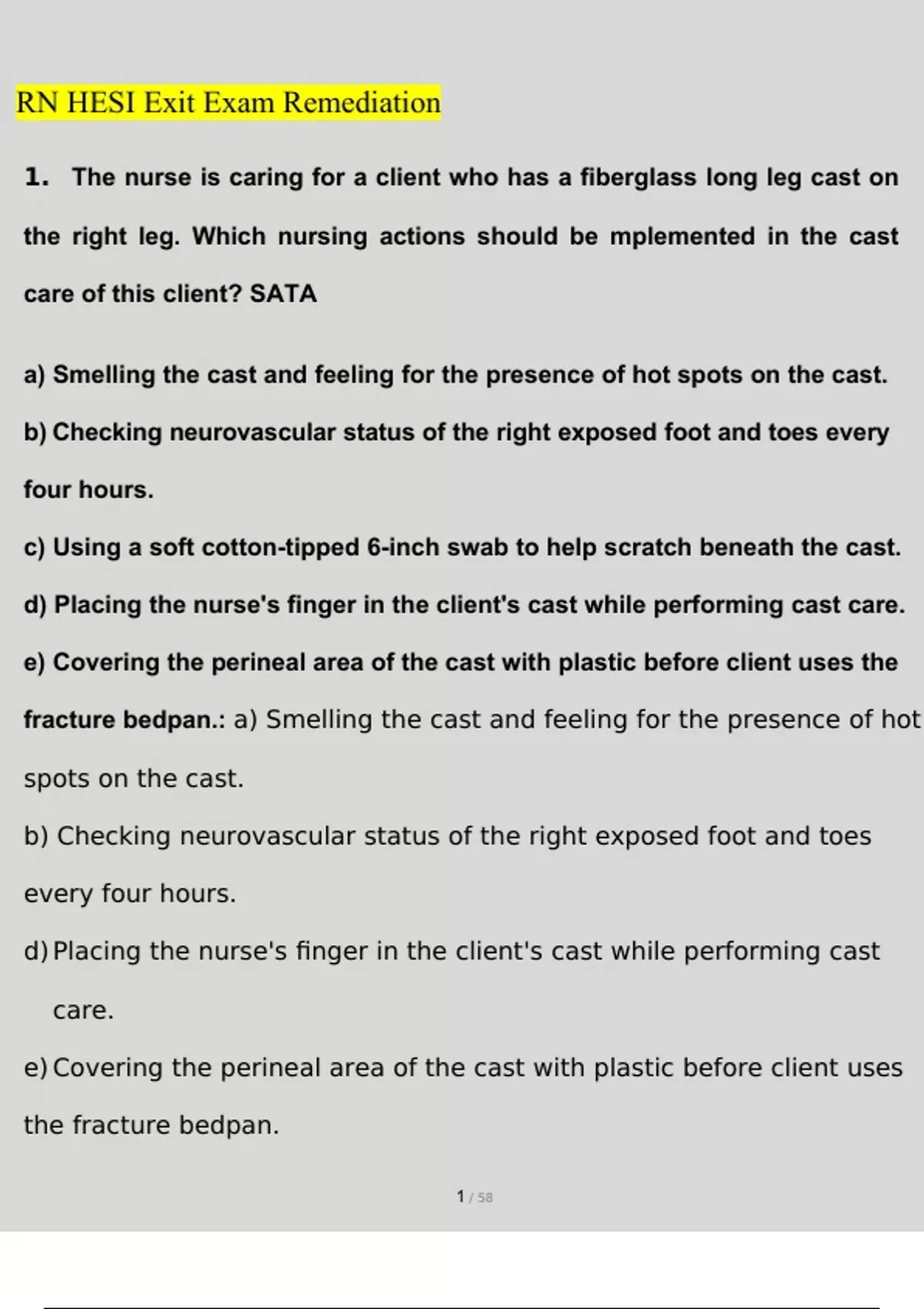 2023 RN HESI Exit Exam Remediation Questions and Answers Latest (2023 / 2024) (Verified Answers)