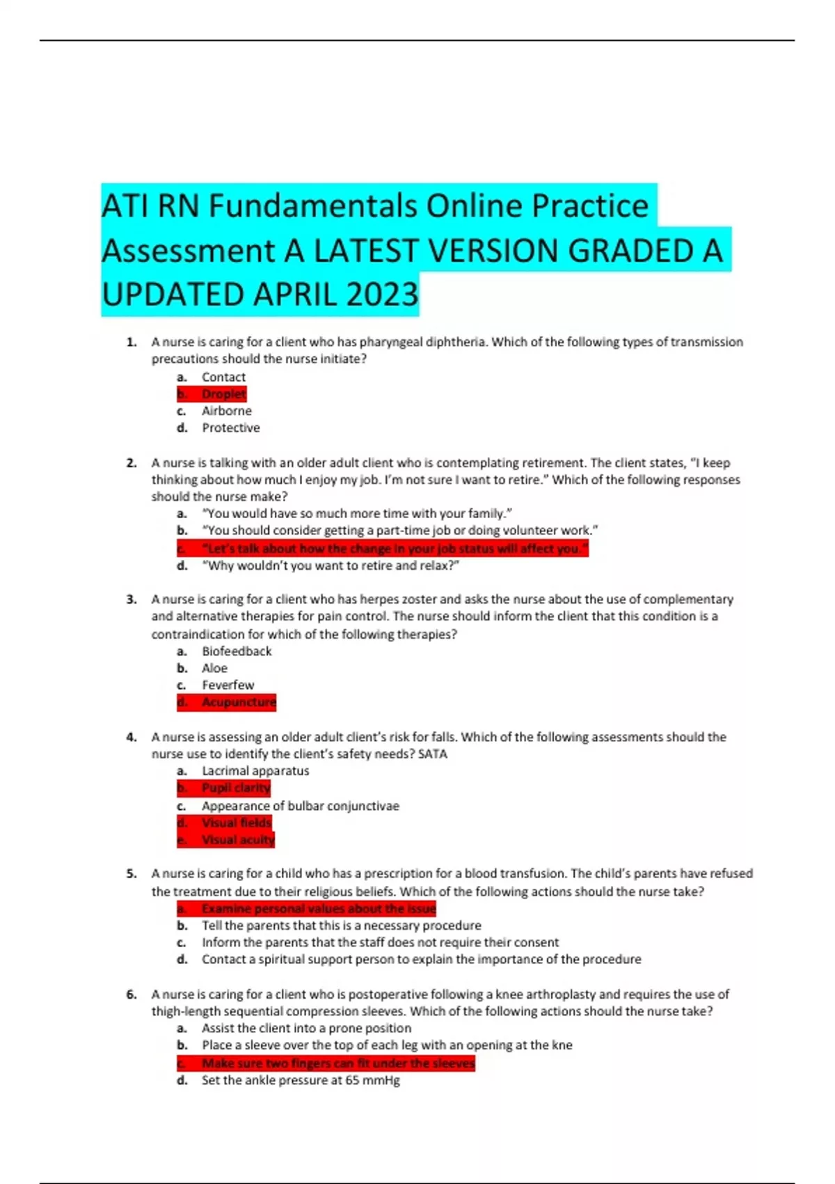 ATI RN Fundamentals Online Practice Assessment A LATEST VERSION GRADED A UPDATED APRIL 2023
