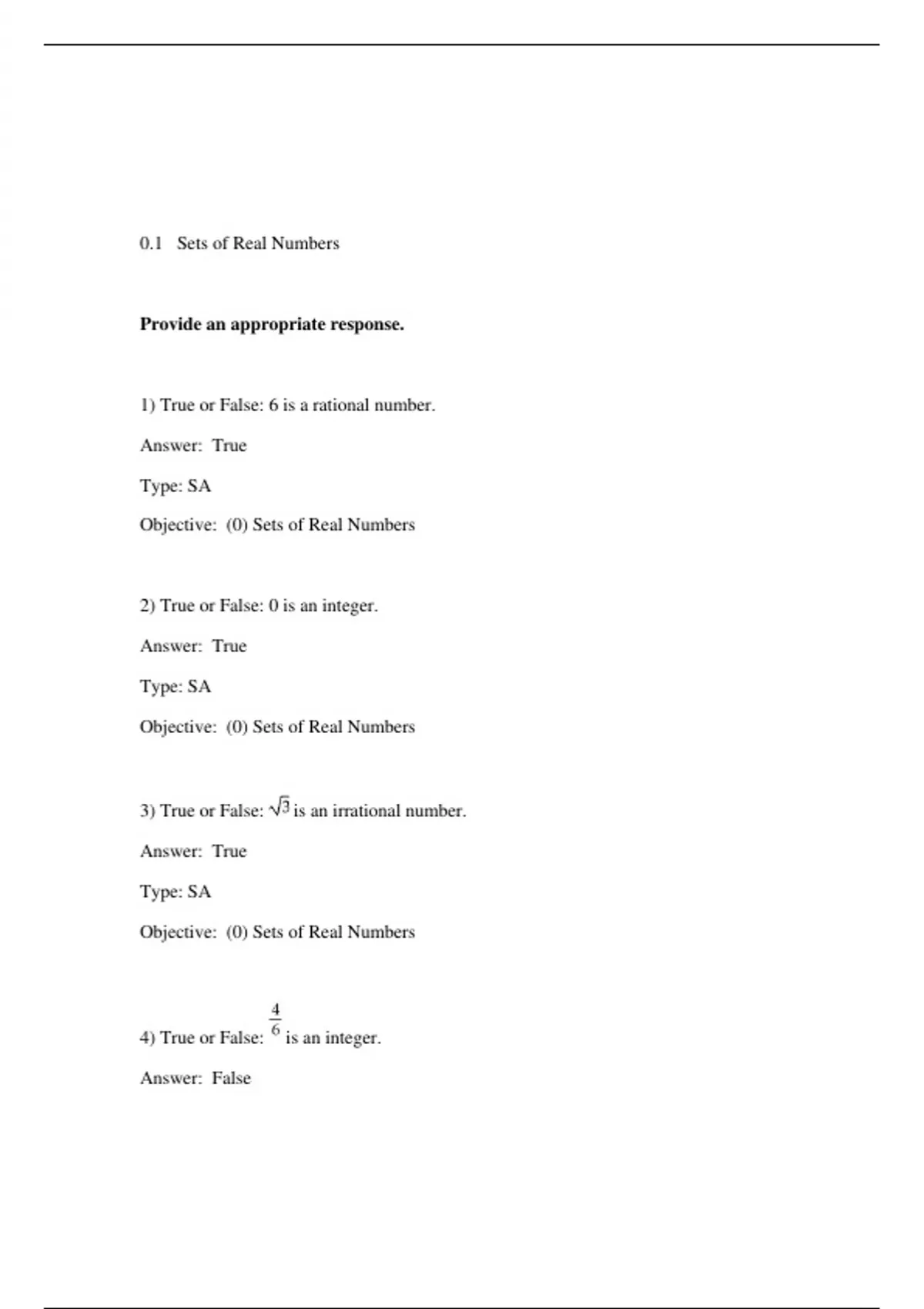 Objective: (0) Sets of Real Numbers