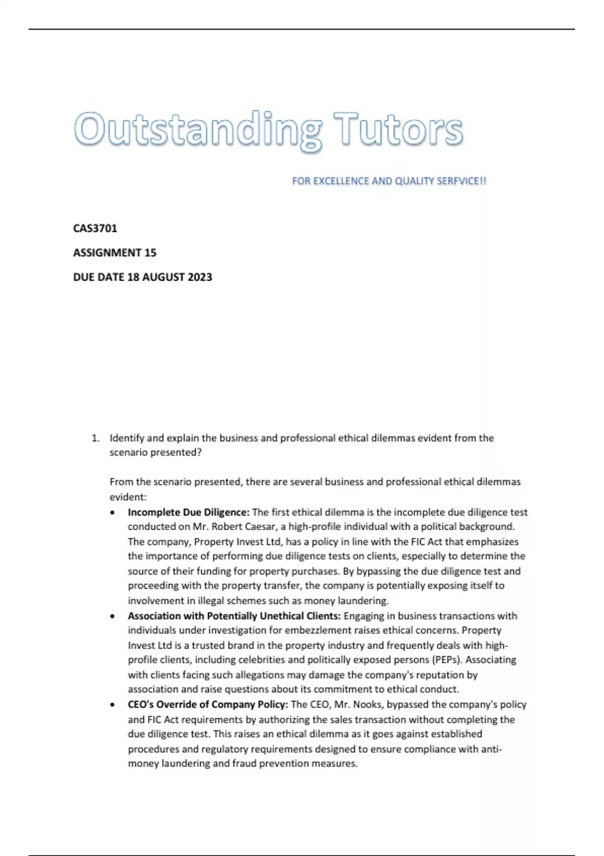 This document contains the solution to CAS3701 Assignment 15 due on 18 August 2023, using this document will ensure a 90% to 99% distinction.