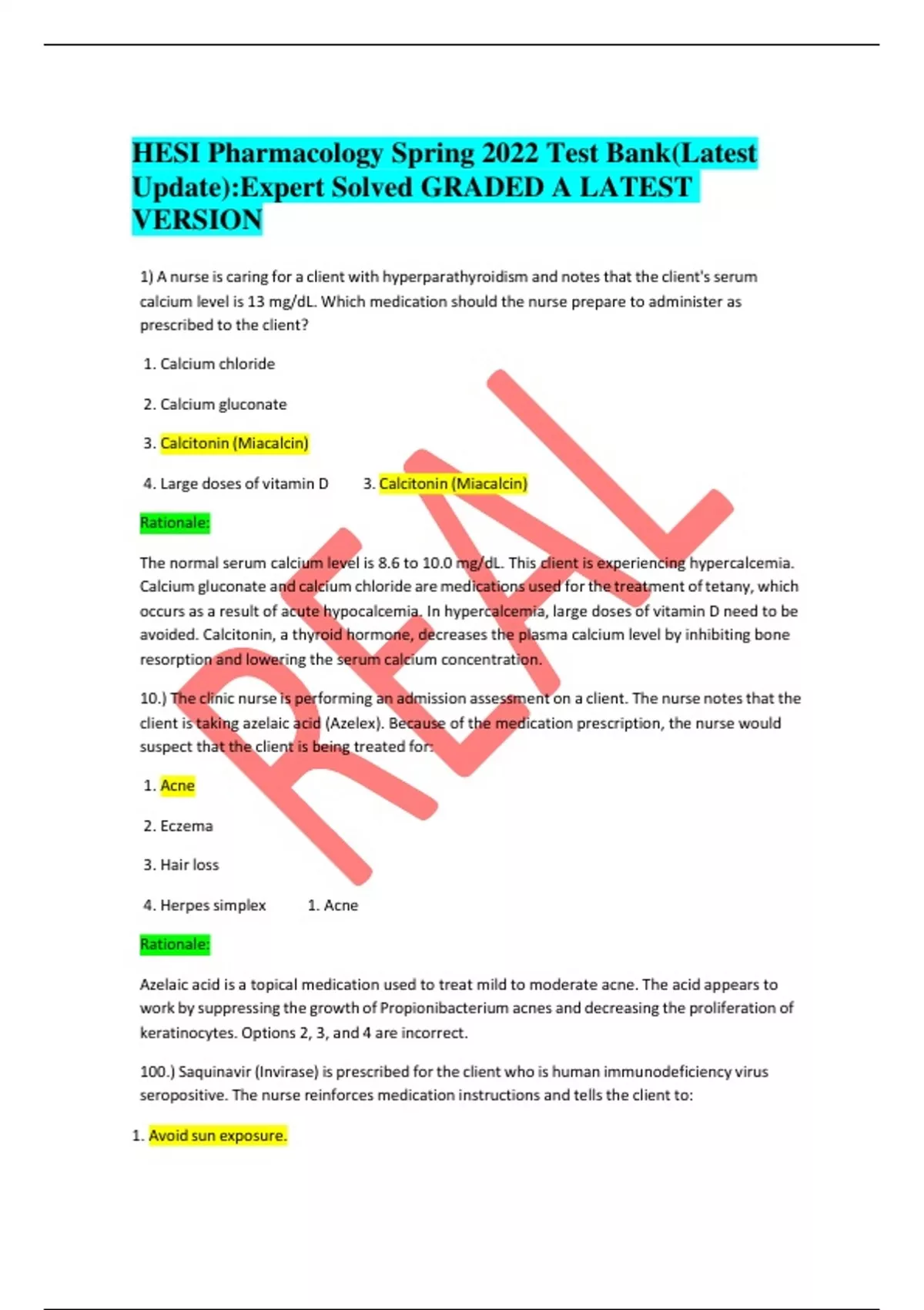 HESI Pharmacology Spring 2022 Test Bank(Latest Update):Expert Solved GRADED A LATEST VERSION