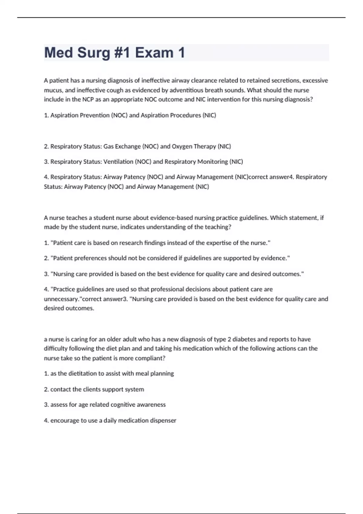 Med Surg #1 Exam 1 questions with correct answer