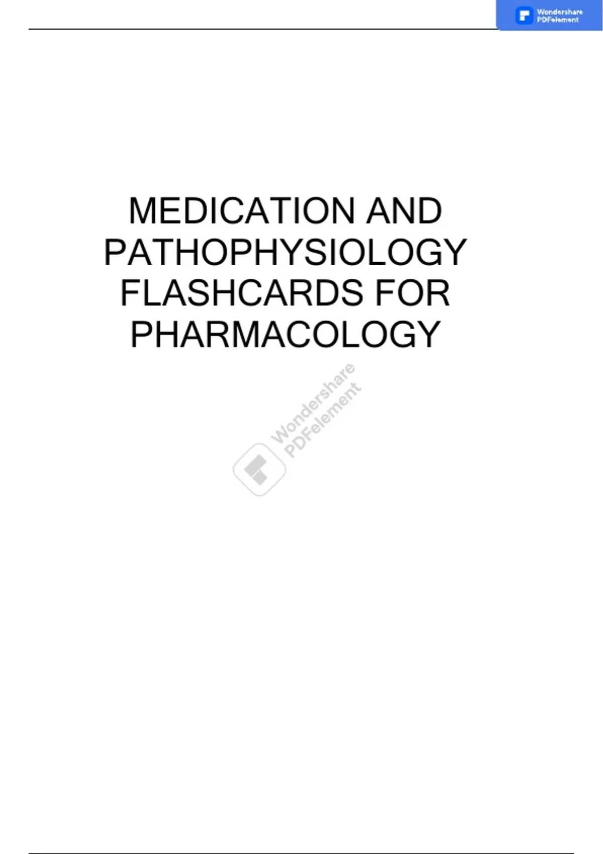 Summary MEDICATION AND PATHOPHYSIOLOGY FLASHCARDS FOR PHARMACOLOGY
