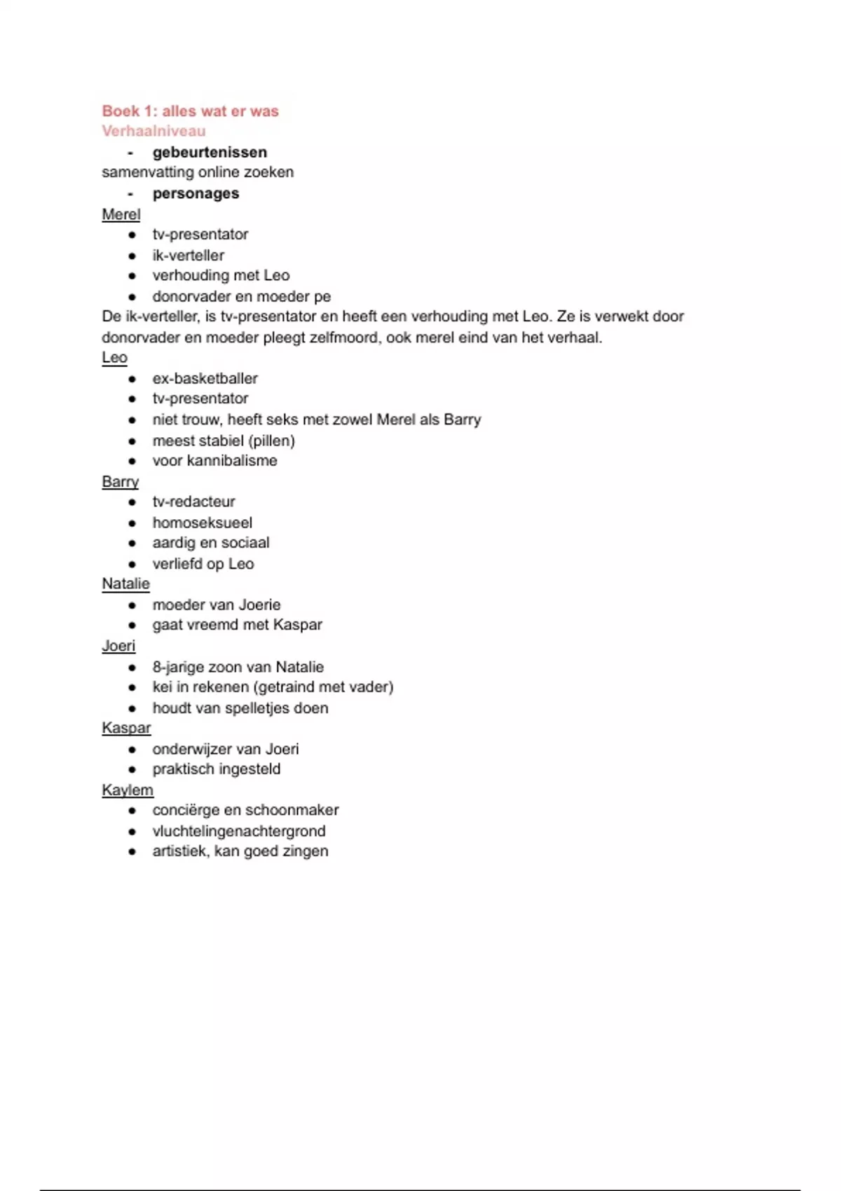 De ik-verteller, is tv-presentator en heeft een verhouding met Leo. Ze is verwekt door