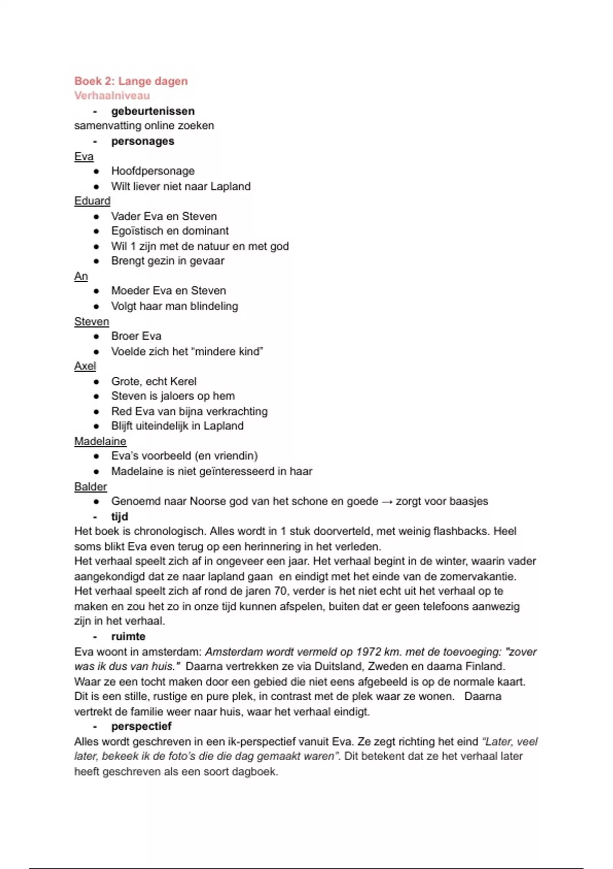 Alles wordt geschreven in een ik-perspectief vanuit Eva. Ze zegt richting het eind “Later, veel