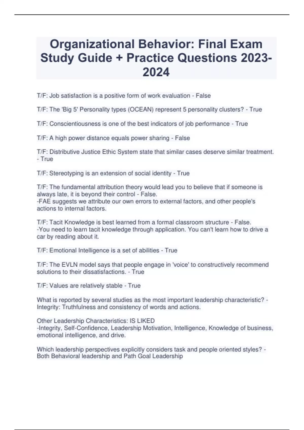 Organizational Behavior: Final Exam Study Guide + Practice Questions
