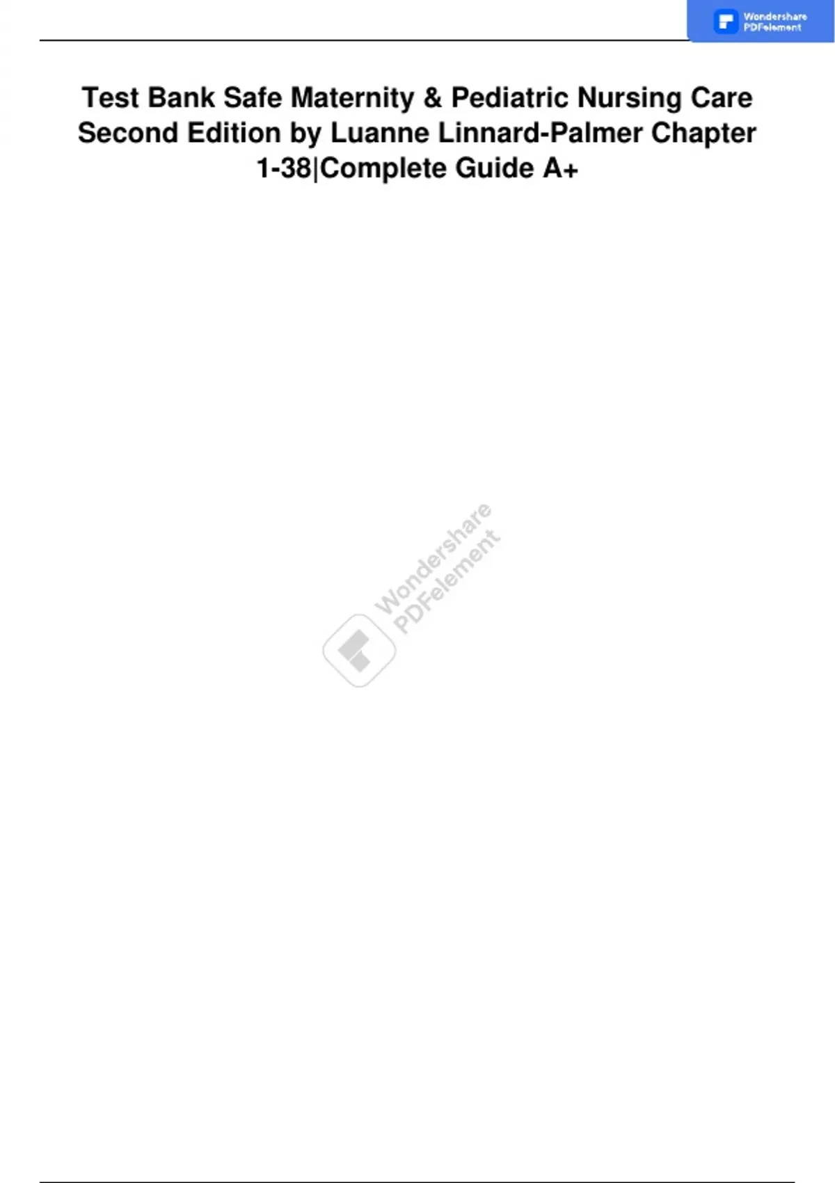 TEST BANK SAFE MATERNITY & PEDIATRIC NURSING CARE 2ND EDITION BY LUANNE LINNARD-PALMER CHAPTER 1-38 COMPLETE GUIDE A+
