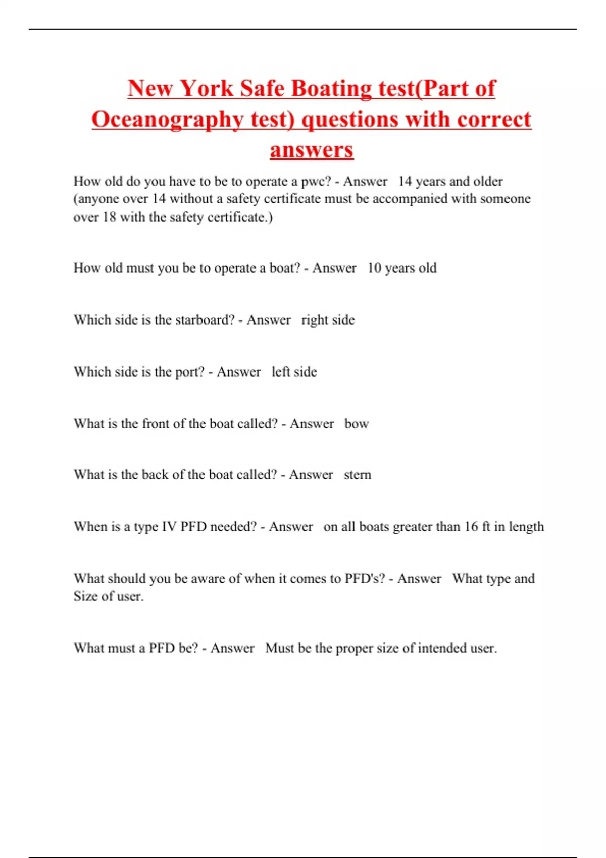 New York Safe Boating test(Part of Oceanography test) questions with correct answers