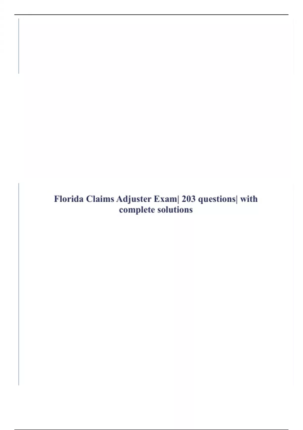Florida Claims Adjuster Exam| 203 questions| with complete solutions