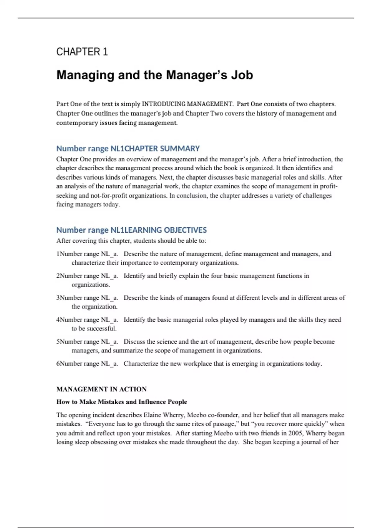 Chapter One provides an overview of management and the manager’s job. After a brief introduction, the