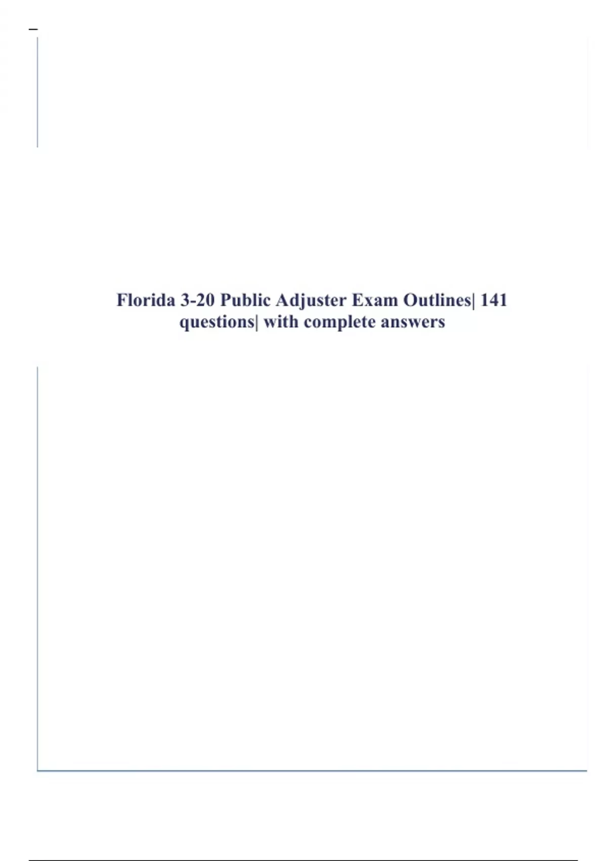 florida 3 20 public adjuster exam outlines| 141 qu