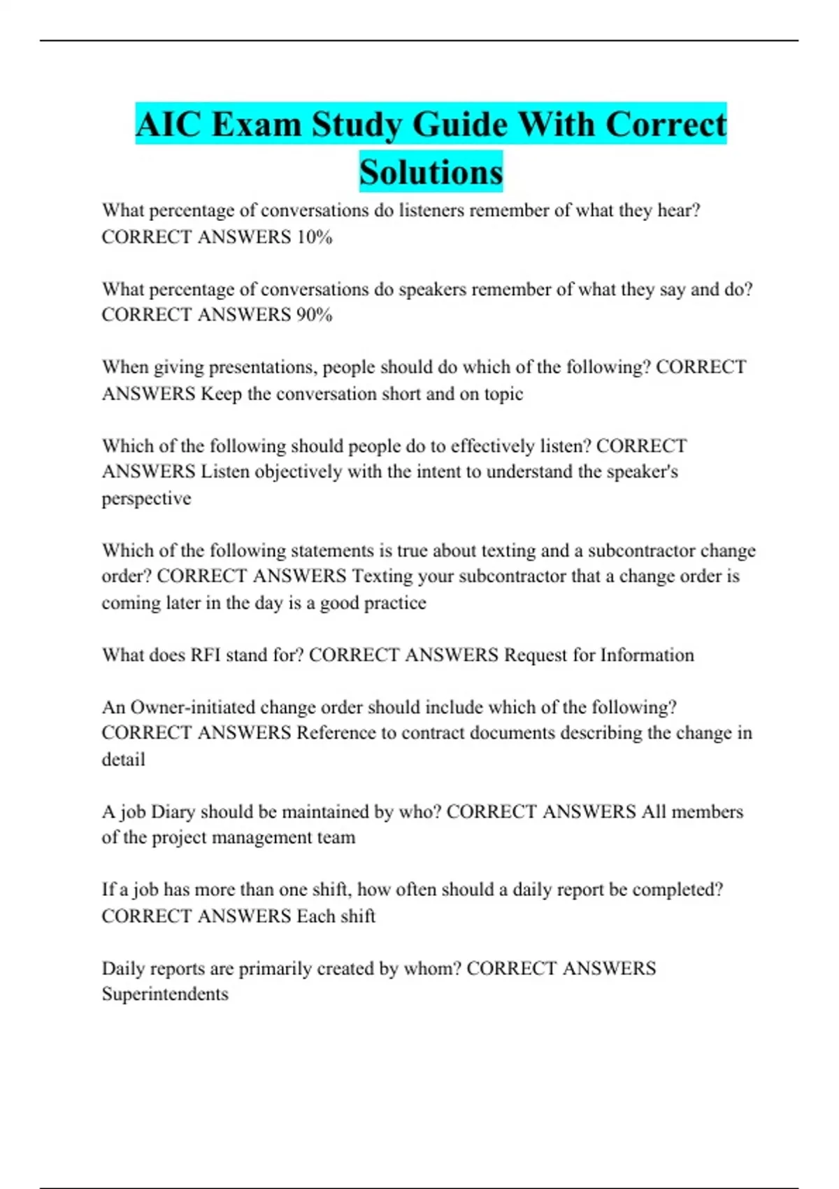 AIC Exam Study Guide With Correct Solutions