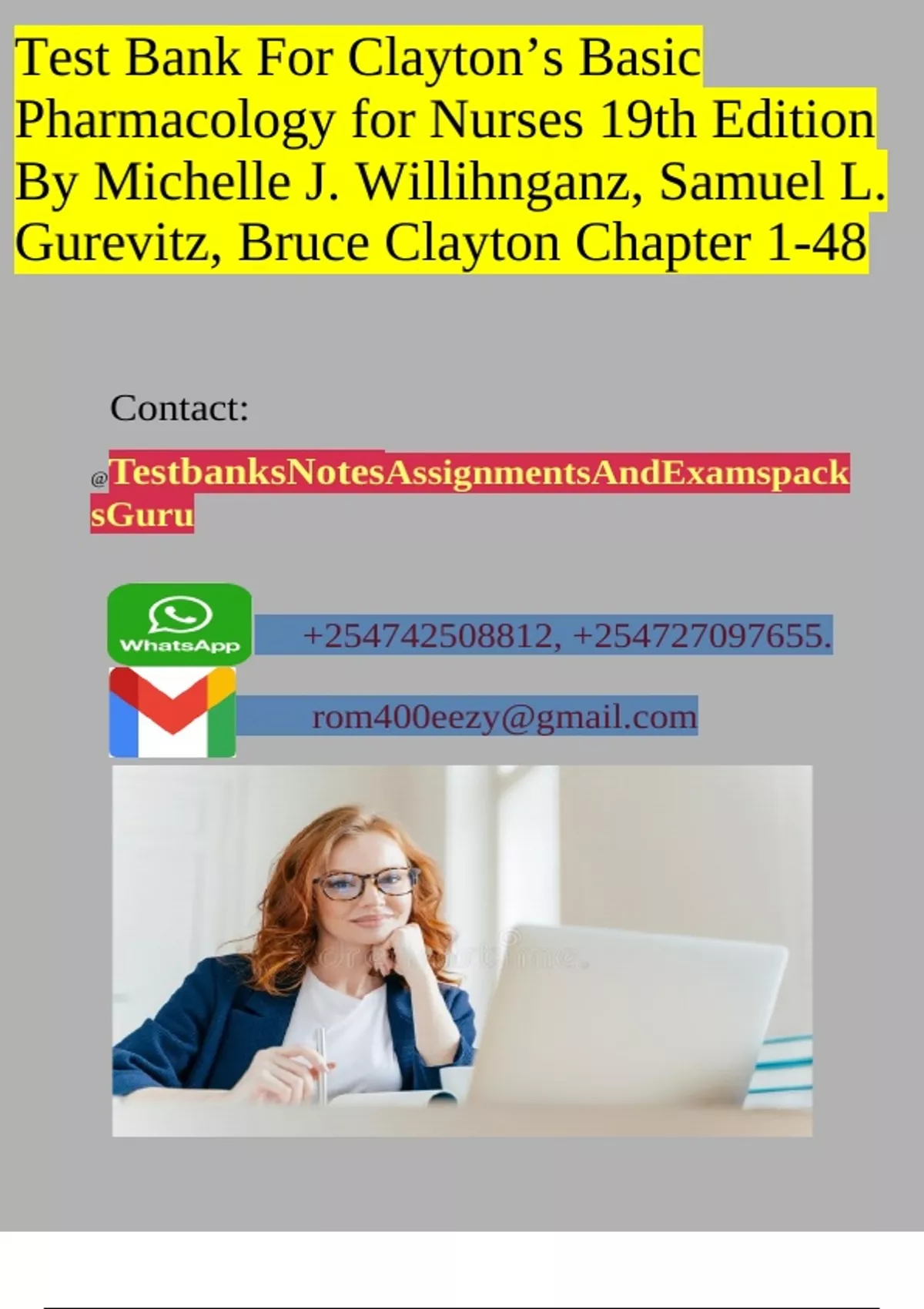 Test Bank For Clayton’s Basic Pharmacology for Nurses 19th Edition By Michelle J. Willihnganz, Samuel L. Gurevitz, Bruce Clayton Chapter 1-48 Test Bank For Clayton’s Basic Pharmacology for Nurses 19th Edition By Michelle J. Willihnganz, Samuel L. Gurevitz, Bruce Clayton Chapter 1-48 Test Bank For Clayton’s Basic Pharmacology for Nurses 19th Edition By Michelle J. Willihnganz, Samuel L. Gurevitz, Bruce Clayton Chapter 1-48