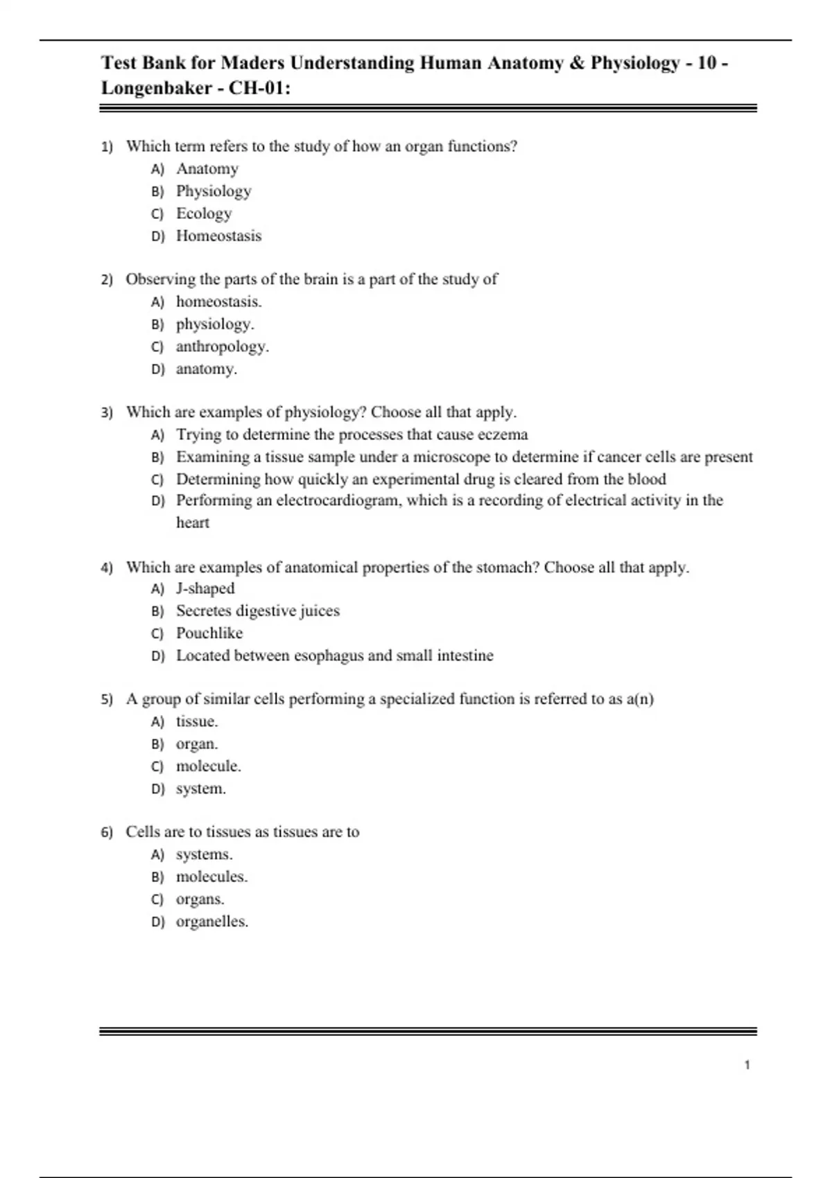 Test Bank For Mader's Understanding Human Anatomy & Physiology, 10th Edition All Chapters -
