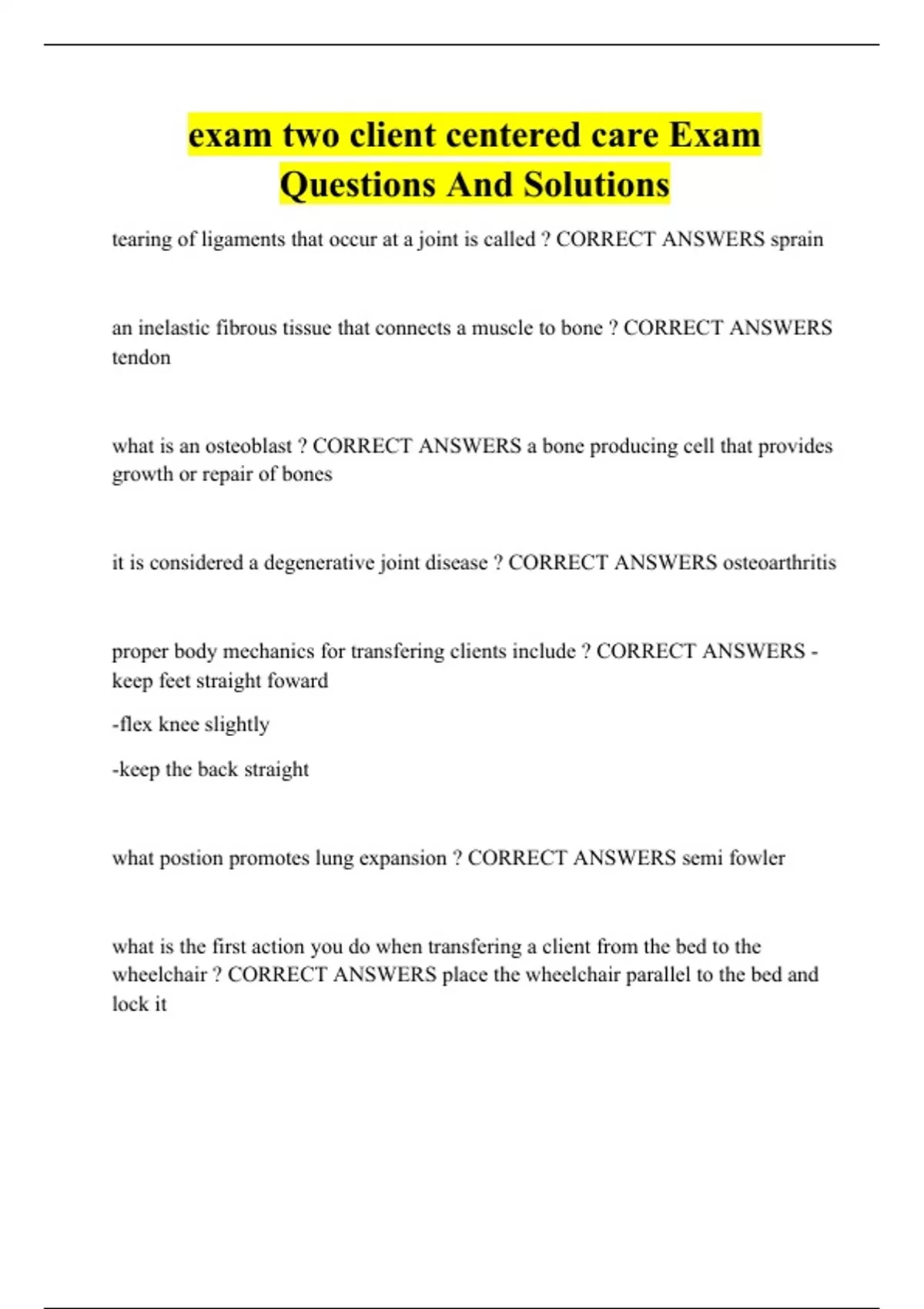 exam two client centered care Exam Questions And Solutions