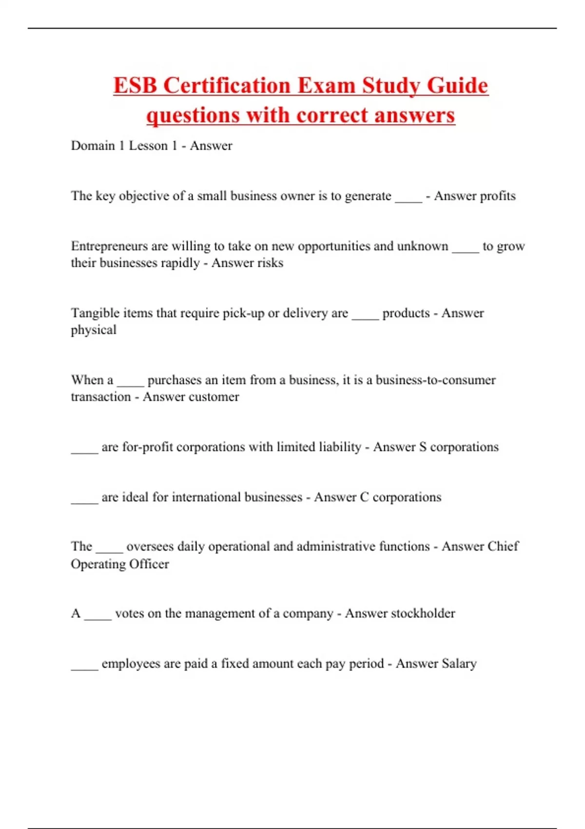 ESB Certification Exam Study Guide questions with correct answers